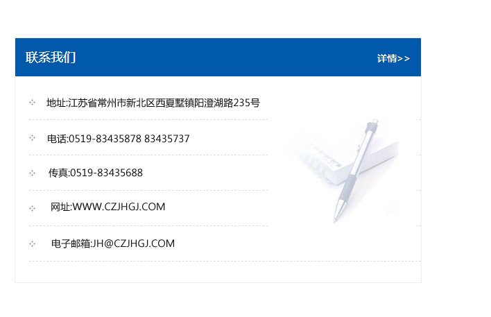 傳真:0519-83435688    郵編:213135    網址:WWW.czjhgj_com.bcjyjn.com    電子郵箱:JH@czjhgj_com.bcjyjn.com
